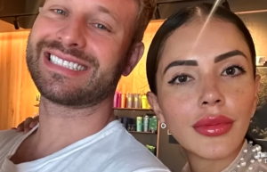 Facing her with the same stage-lit gravity stands Matt Branis, a partner whose every move has become a chapter in their shared story. He isn’t merely watching Jasmine—he’s choosing to participate, to make his own bow to the moment. The air between them hums with a mixture of tenderness and daring, as if the act about to unfold could either draw them closer or push them toward a new sort of distance. This isn’t a stunt; it’s a mutual vow cast in the most literal form—hair shaved away to mirror a transformation that has already begun inside Jasmine’s body and soul.