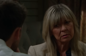 The dialogue rockets forward again, stacking shocks in rapid-fire succession. “So Graeme’s definitely back then. I thought he died.” The response lands with a sly reminder of the backstory’s depth and its secrets, “Yeah, but remember Graeme SAS trained.” The rhythm continues, alternating relief with dread: “Say no more. Oh, and tell me my Kane has not got cancer.” A chorus of fear answers in unison, then a grudging mercy—“He hasn’t got cancer.” The room exhales as though a door has closed on a nightmare, if only for a moment.