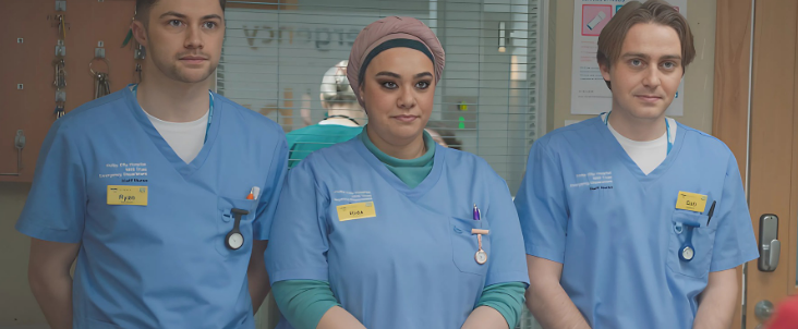 The new shift begins with immediate concern when Cam fails to appear for work. For someone as reliable as him, unexplained absence is alarming enough. Siobhan notices quickly, though the pressure of the department initially drags her attention elsewhere as patients continue arriving.