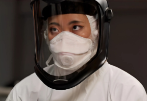 Because Matty didn’t secure his PPE properly, he’s left dangerously exposed when Grace’s blood splatters across his face.
