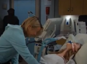 Holly staggers, disoriented and frightened by what she’s done and what she’s now becoming. Her body betrays her as convulsions seize her, her breath ragged and frantic. The party becomes a chorus of screams, the kind of fear that tightens throats and makes time feel suspended. Paramedics arrive, the wail of sirens piercing the night as they rush Holly onto a stretcher. She’s whisked away toward Salem University Hospital, the doors swallowing the chaos behind them, while the crowd outside recovers from the shock of what just happened.
