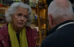 A lingering voice suggests there’s no point hanging around, yet the tension doesn’t release. Someone mentions leaving a present for Robert—an idea that feels less like kindness and more like a quiet, pointed message. The response comes back sharp, almost bitter, like someone refusing to let grief turn into cruelty without a fight.
