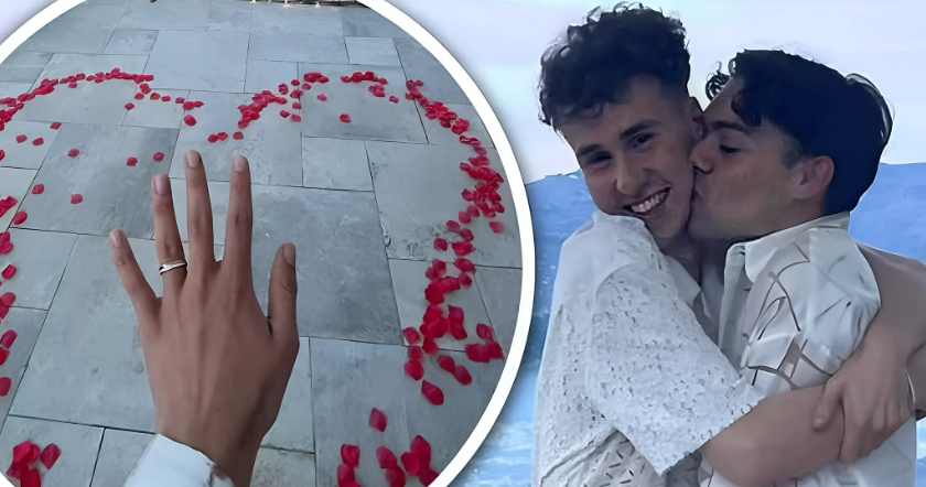 The pair got engaged against a breathtaking backdrop of the city and beach. One photo captured Bradley and Scott in an embrace within a heart made from rose petals.