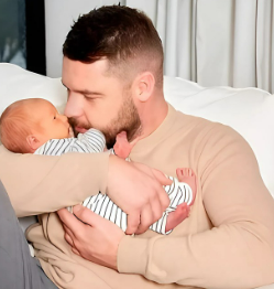 ‘I’ll never tire of watching @stephjones1710 being a mum. Because you are the amazing mother you are, I get to be the father I always hoped to be. Thanks for helping me mature into the man and father I am today, and creating our family together. Always grateful’ he captioned the adorable post.